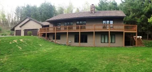 Beautiful, private custom designed country home! This 3-4 BR, 3.5 bath home offers a walk-out LL to a fun hot tub area, open KT/DR/LR, nice master suite, spacious exterior deck, oversized heated 3 car garage, energy efficient w/passive solar/wood heat/forced air AND nice gas fireplace in the LR! Best of all this home sits on 7+/- wooded acres (seller to survey prior to closing). You will enjoy the spacious tiled back entry, french doors on the office, and more! New steel roof in 2011 with transferable warranty. More land Available!!