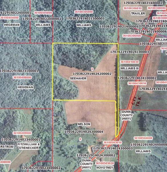 18 acres open and 17.6 acres wooded. Super convenient location to Boyceville, WI. NUMEROUS USES: Building site and hunting land.