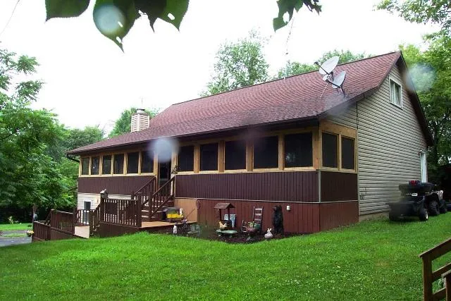 Country Living at its best with this 1.5 story rustic home. This home features three bedrooms, three baths, main floor laundry, fireplace in living room, large 48'x8' porch on south side of home. You will love the first floor lay-out of this home. Also located on site is 26'x32' two story garage with a cat walk that connects to the home. You have to see this property! Owners retiring.