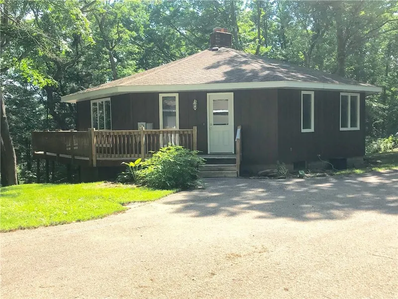 Unique octagon style home just across the road from Lake Tainter! Property sits on over 11 acres of private wooded beauty. Lovely views from spacious LR and wrap-around deck. 5 BR/3 BA and kitchenette on LL make this both a perfect single family home w/ in-law suite or rental. Wheelchair access to LL and accessible full bath. Lambs Creek runs along the property line. Freshly painted rooms on main level and hardwood floors in great shape. High speed Internet available. Septic was pumped May 2021.