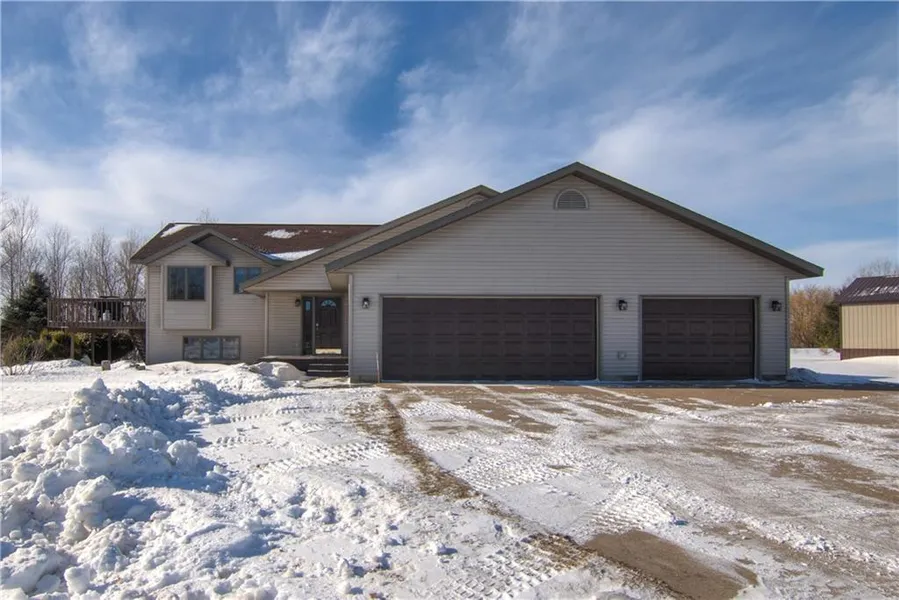 7 acres of serenity right outside your door! Spacious home boasting lots of natural light and great views of your backyard. Home comes complete with a functional layout, semi-open concept, vaulted ceilings, large family room in basement, and some new flooring throughout. You can enjoy many moments on the big deck right off the kitchen overlooking the backyard. This property is just outside of Elk Mound and provides a private and park-like setting for the whole family to enjoy ‹“ plenty of space to enjoy many hobbies and outdoor activities. Other special highlights include, in-floor heat in the basement, big entryway, master bedroom offers direct access to main-level bathroom, newer roof, furnace, and pressure tank, and an additional 36 x 56 pole shed just steps away from the main house.