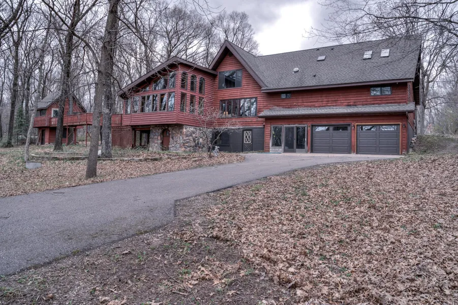 Nestled among towering trees, giving you ultimate privacy & peacefulness, this home is the perfect place to unwind & relax! This property is 8.2 acres of wooded terrain offering a recreational paradise for hunting, gardening, and more! Lots to love about the unique, custom-built home w/its captivating charm & modern amenities. This home creates an open & airy feel from vaulted ceilings, exposed beams, & loft space. Enjoy sun-filled rooms w/scenic views, a master ensuite, kitchen w/granite counters, sunroom w/floor-to-ceiling windows, & beautiful wood & stone accents, giving you a rustic & cozy feel. This property has so much potential to really make it fit your lifestyle – a single-family home w/bonus living spaces, are you in need of In-law quarters, maybe you want more living space in the unfinished LL, here it is & the possibilities are endless! Other highlights include, newer roof, w...