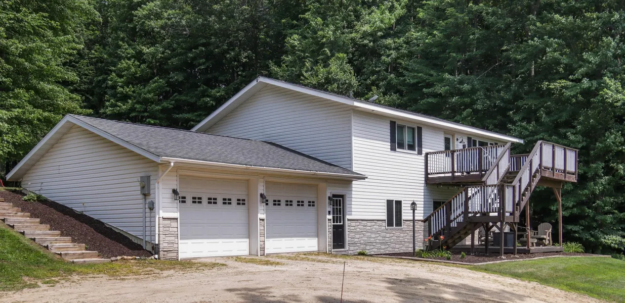 Welcome to N10902 50th St! As you approach this beautiful 3 BD/3 BA home, you'll be captivated by the country ambience of this property. On the main level awaits an updated kitchen with quartz countertops & SS appliances which flow into the dining area. Natural lighting pours into the living room with LP fireplace making this a haven of warmth. Rounding out this level is the master BD (en suite), laundry room, plus another BD & BA. The LL features 1 BD/1 BA & a large family room w/ pellet stove primed for entertaining. Stepping onto the deck you'll be greeted with scenic countryside views. The deck invites relaxation while the yard ensure endless outdoor making memories with loved ones. 2 car garage for all your storage needs. 24x24 concrete slab. Come view your new home!