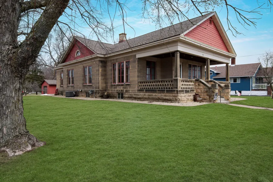 Welcome to 703 Main St! This 3 BD/2 BA home awaits you (double corner lot)! With years of care & tasteful upgrades, peace of mind comes standard. This home seamlessly blends the comforts of modern updates with the character of original craftsmanship. 10' ceilings, original crown moulding, & hardwood floors are sure to delight. The new kitchen features custom red oak cabinets & granite countertops. The spacious living room is anchored by a cozy natural fireplace & the dining room is ideal for family gatherings. 3 BDs & 2 new BAs (laundry & speakers) complete the main level. Entertaining & relaxation are made easy on the covered front porch & patio. Outside you'll also find an attached 2-car garage & heated detached garage (22x24). This home is ready to be cherished by its next owners!