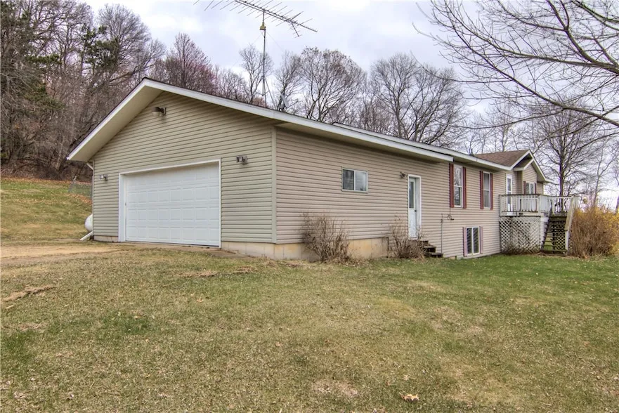 Enjoy country living on nearly 5 acres in the Elk Mound/Colfax School District. This 3-bedroom, 2.5-bath home features a main floor primary suite with private bath, plus two additional bedrooms on the main level. The layout includes main floor laundry and an open kitchen and dining area that leads to a 12x20 wood deck overlooking the backyard. The lower level offers ample storage and the potential to finish two more bedrooms. A 28x28 attached 2-car garage provides space for vehicles and equipment. Conveniently located between Colfax and Menomonie. New septic system to be installed prior to closing. New flooring in the primary bedroom. Roof 2011, Water heater 2023, water softener-owned but not connected, Reverse osmosis at the kitchen sink only.