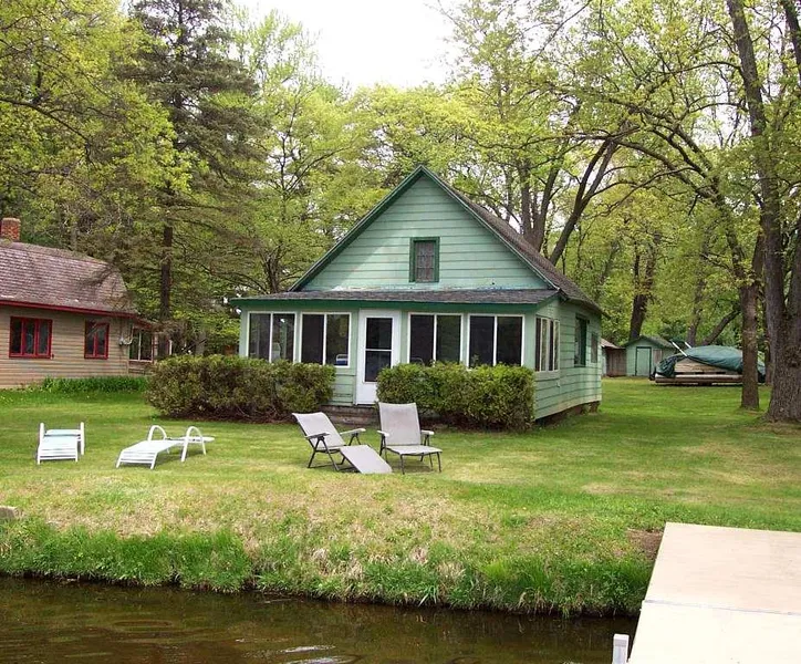 Start making memories you will cherish forever! Three season cabin available on Lower Tainter with 85' of low water frontage! Newer dock inc w/sale. Cabin inc kitchenette, dining area, LR, enclosed porch on lake side, BR on the main level & a sleeping loft that currently holds two double beds. Cabin has sand point well & pump is currently not connected. There is a shared outhouse w/neighbor to the north w/a shared holding tank. Power on site/circuit breakers. INCREDIBLE VIEWS! Floodplain.