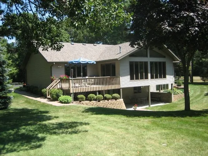 Incredible Upper Tainter Lake home IMMACULATE & ELEGANT in every way! Todd Theis custom cherry cabinets, vaulted ceilings, 4 season room w/ gas fireplace w/ glass surround to capture beautiful lake views, meticulous landscaping & inviting stairs lead to water's edge & 12x22 boat house for all the lake toys. Wonderful, bright LL offers large 3rd bedroom, full BA, spacious family rm/rec rm/walk-out patio, exercise rm & large amount of storage. Roof 2010, Wtr htr 2011. Andersen windows!