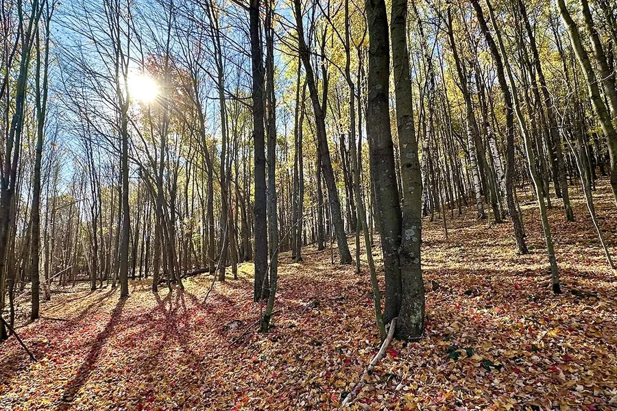 This 12-acre property in Dunn County, WI, offers a serene retreat surrounded by tall maples, pines, white birch, and oaks. Perfect for a camper or retirement home, theres abundant wildlife with whitetail deer and grouse, making it ideal for hunting enthusiasts. A winding trail leads into the tranquil forest, providing unmatched privacy.