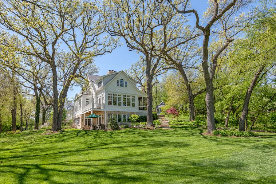 Showings and Virtual Showings Daily by Appt. Located on just over 3 wooded acres with sweeping lawns and mature trees, this New England-style estate combines luxury and privacy. With its spacious grounds and elegant interior details, this property can be your own private retreat. From the captivating front porch when you enter the house through the open floor plan with soaring ceilings and designer lighting, the estate is filled with thoughtful touches. Hardwood floors run throughout the home. The chef's kitchen features professional appliances, stone countertops, two islands and custom cabinetry. Sit down for a formal dinner or curl up with a cup of coffee in the breakfast nook. The interior offers 3 distinct offices and an abundant space to relax and entertain, from the inviting family room to the hearth room, which feature beautiful wood details and soaring ceilings. Multiple stone fireplaces keep the space cozy, while the windows let in plenty of light and air. Get your own master oasis with a private balcony and a lavish spa bath with an oversized shower, marble countertops, freestanding tub, and a fireplace. The walk-out basement is a dream with a rec room with stone fireplace, multiple TV's for all your sporting events, beautiful wet bar, a lounge area, media room and 2nd office/bedroom 6. The exterior spaces include a sports court, charming tree house, stone patio with a hot tub and firepit. Nestled in a prime neighborhood just outside Chicago, this estate shouldn't be missed.