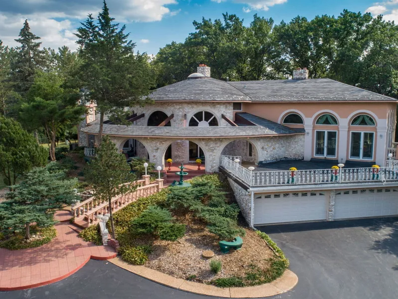 As seen on tv, featured on numerous social media channels and in magazines Villa Vincenza situated on just under 5 acres offers a true masterpiece experience unlike any other. From the moment you arrive you are greeted by lush landscaping and one-of-a-kind craftsmanship. The perfect blend of Mid-Century Modern and Mediterranean architecture flows throughout. Passion and attention to detail is carried not only through the artist hand laid stones shipped direct from Mexico City, Mexico to the foyer Onyx floor or Marble Columns custom crafted on site. The Grand Room's three-sided fireplace rising 17' tall meeting the hand painted coffered ceiling in this 1,400+ square foot room is a true statement piece. The main level kitchen features stainless steel appliances, granite counter tops and large windows letting an abundance of natural light to flow throughout. An entertainer's paradise with multiple levels and areas of gathering. Whether clients or guests wish the mingle at the main or lower-level copper top bars each offers ample room for discussions. During the summer months enjoy the privacy of the inground pool. Custom inlayed Maple flooring awaits as you rise to the top of the staircase to the second floor. The lower level offers a separate kitchen, 300+ bottle wine cellar, with cedar lined closet, additional living space and sauna. Villa Vincenza is situated close to Butterfield Country Club and Butler National Golf Club which are two of the finest Golf and Country Clubs in the Chicagoland area. Graue Mill & Museum, Hidden Lake Forest Preserve and The Morton Arboretum are just a few of the many nearby attractions. Enjoy world class shopping Oakbrook Center where you'll find Neiman Marcus, Nordstrom, Louis Vuitton, Tiffany and Co. and dining at Weber Grill, Maggiano's Little Italy or Wildfire Steaks, Chops & Seafood. Be sure to schedule your showing today on this one-of-a-kind estate.