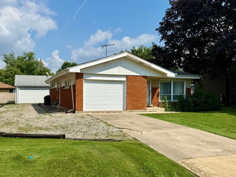 Red-hot opportunity in sought-after Brookhaven Manor! This 3-bedroom ranch offers endless potential with a full unfinished basement ready for your design ideas, all in one of Chicagoland's most convenient suburbs-close to transportation, shopping, dining, and excellent schools. The floor plan features a spacious living room and dining room with large windows that bring in natural light-perfect for gatherings. A sliding glass door off the dining room opens to a covered patio, making indoor-outdoor living a breeze. The bright eat-in white kitchen sits at the heart of the home, making it easy to entertain. Most of the interior has been freshly painted, and all three bedrooms include hardwood floors and clerestory-style privacy windows. A full bath and half bath are located on the main level for added convenience. The living and dining rooms are carpeted, but hardwood flooring lies underneath for those who prefer to restore it. The basement offers incredible possibilities-whether you envision a recreation room, home office, or guest suite. And here's the bonus: this home includes both a 1-car attached garage and a 2-car detached garage in the backyard-ideal for car enthusiasts, storage, or workshop space. Don't miss your chance to make this Brookhaven Manor gem your own! Live here and make it a wonderful life!