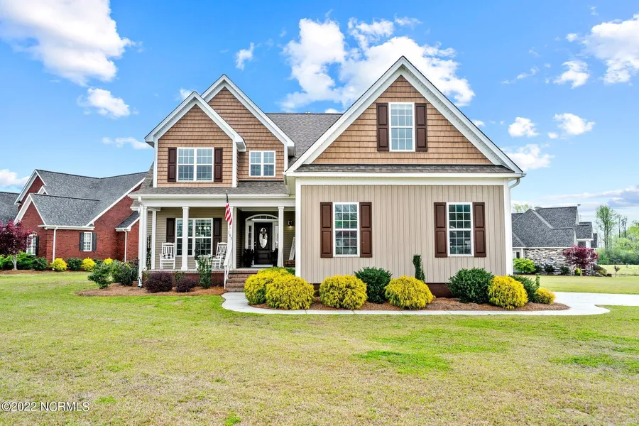 Price reduction by motivated sellers! Are you looking for a spacious, immaculate home situated in a prestigious community? Well, look no further. This lovely home is situated on a corner lot in the Carriage Crossing Community. You will enter from the covered front porch which is perfect for porch sitting. First, you will see the foyer and head straight to the den with a fire place equipped with gas logs. You will find the master suite downstairs with a walk-in closet as well as additional closet space. Master bath has double vanities, walk-in shower, and a separate soaking tub. This home offers a formal dining room right off of the kitchen. Not only does this kitchen offer stainless steel appliances, but also granite countertops and a spacious pantry. A half bath is conveniently located which is always nice for guests. Upstairs you will find three bedrooms, a full bath and a bonus room which would make a perfect play room, craft room, office, etc. In addition, you will find a small sitting room with endless possibilities. This home has wood flooring in the common areas. The tall ceilings are also a bonus. All mounted TVs will convey. As you go out to the back you will exit on a covered porch area which leads to an outdoor patio area. This area includes a large brick fireplace which is perfect for entertaining, watching ballgames, and great for cookouts. Partial patio furniture will convey. While you are entertaining friends, the kids can enjoy the outdoor wood play set equipped swings, slides and sand area. The wood play set is included as well. There is a chest freezer located in the garage that will convey. Summer is quickly approaching which means you may want to cool off in the new neighborhood pool. This home truly offers something for everyone.