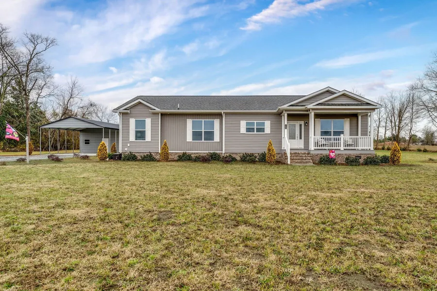 This 2022, 3 bedroom, 2 bathroom 1,920 sq ft. beautiful home in Duplin County situated on 1.9 acres, boasts a 5 person jacuzzi, fire pit and 24x24 carport/storage building combo with a roll up door on the back side! Perfect for both entertaining and working outdoors! The interior features 9' ceilings, crown molding, wide baseboards, and LVP flooring throughout. Kitchen has impressive stainless steel appliances with a wall oven and a vegetable sink. Relax in the living room in front of a cozy gas lit fireplace with adjustable flame and blower, and grab a book off the built in bookshelves flanking both sides. There is space above the mantle for a 75'' television. Elegant master bedroom features tray ceilings, a huge his and her master bathroom with walk in tile shower and massive walk in closet! The well designed laundry room has a wash sink, freezer space, and a built in drop zone for co...