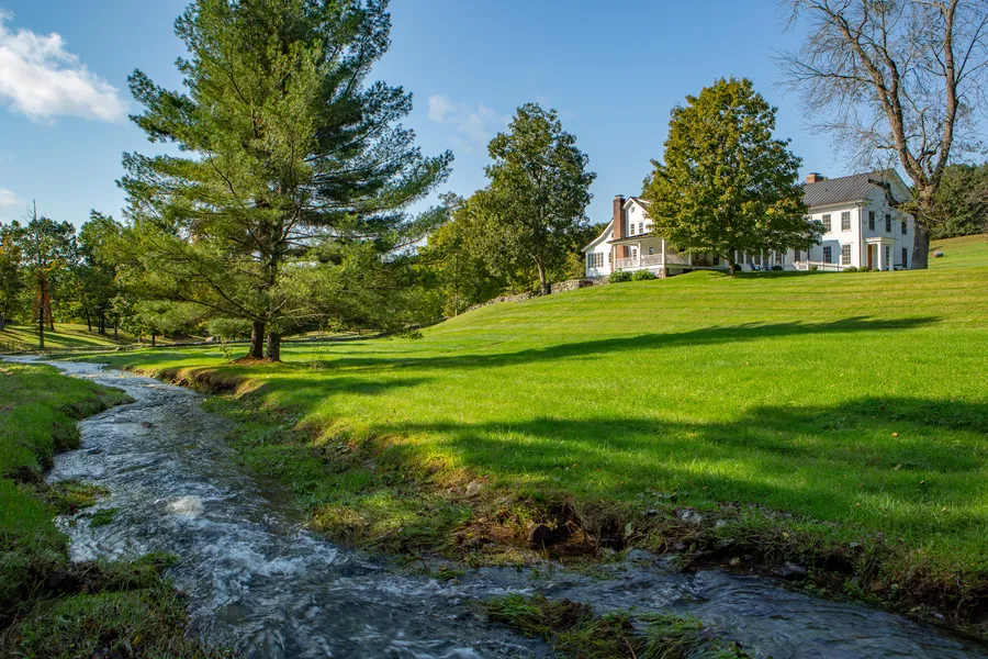 Yonder Hill Farm. Old and new. A charming and immaculate country house in a private and idyllic setting on 42.8 acres at the end of a quiet country road. The original warm and cozy early farmhouse is updated for modern living. The new addition has high ceilings, spacious airy rooms full of sunlight. 8 bedrooms in all with 7 full bathrooms and 3 fireplaces. A large country kitchen. A hilltop swimming pool and pool house with distant views. An early barn at the entrance to the property overlooks a rushing stream winding through the property. Equidistant between Millbrook and Rhinebeck.