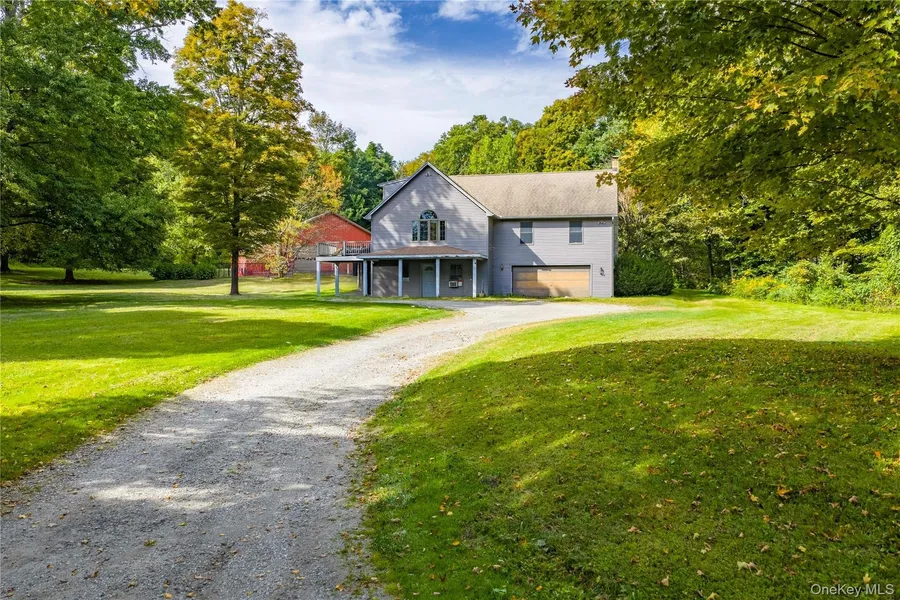 The TRIFECTA, a rare offering that unites a contemporary three-story residence, a private inground pool, and a remarkable 3,500 SF steel barn privately sited at the back of the property. Set on 3.37 acres along Route 44, just minutes from the heart of Amenia, this property blends lifestyle and business potential in one extraordinary package. The property's centerpiece is the most incredible steel barn, previously an automotive shop, stands as the crown jewel for any tradesperson, hobbyist, or entrepreneur. This 70 x 50 structure boasts two oversized garage doors, 22 foot ceilings at the center, an office, a combination laundry room and bathroom, propane heat, a separate water meter with hot and cold water, its own septic system, and ample parking tucked far from the road. Zoned for Office/Commercial/Industry Mixed-Use, the barn opens endless possibilities for light industry, retail, service businesses, warehousing, or trades like auto repair, landscaping, contracting, tree services, or agriculture-a true field of dreams for those with vision. The home itself is a fantastic opportunity for restoration, offering the perfect canvas to bring its great bones and unique character back to life. This 2,882 SF three-story residence boasts dramatic peaks, vaulted ceilings, and wide pine flooring waiting to be revitalized. The home's layout is open and spacious, with an interior balcony and a catwalk that add to its distinctive charm. On the ground level, you'll find a rec room, a den or office, a full bathroom, and access to the two-car garage. The main floor features an open-concept dining room, kitchen, and breakfast area with a door that leads to the side deck and pool area. A super-sized living room with great windows and a cozy wood-burning stove provides the perfect spot to relax. This level also includes a laundry room with a door to the back deck and two equal-sized bedrooms with a full bathroom. The top floor is a private primary suite with a vaulted ceiling, two closets, and a bathroom with a large tub and shower. The catwalk leads to an attic with plenty of storage. Outside, the property shines with its vast yard space, ideal for recreation or relaxation, and the pool area serves as a private oasis for summer days. Whether you're an artist, collector, or professional tradesperson, this property is a one-of-a-kind opportunity to live, work, and create in a setting that blends modern potential with timeless appeal.
