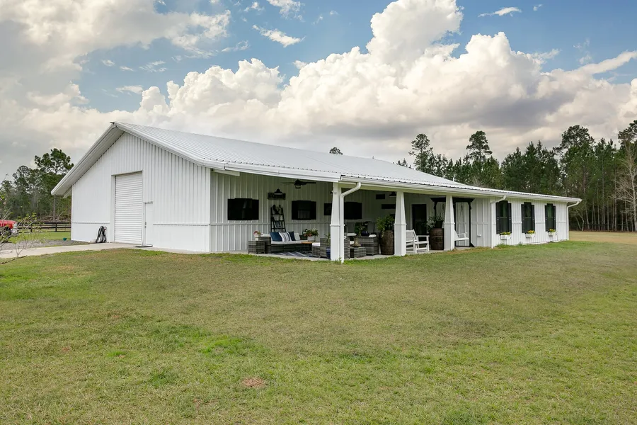 Enjoy fresh air, wide open spaces and peace and quiet with this country home. This property has 15 acres, 1008 SF of living space with 2 BR, 2 BA and a 3,285 SF garage. The kitchen has beautiful Craftsmen cabinetry and granite countertops. The bathrooms also have beautiful tile work with granite countertops. The covered patio offers another 770 SF of outdoor living space perfect for watching the spectacular sunsets. The garage has large roll doors on the north and south ends of the building with 12 feet of clearance making it easy to drive through and perfect for parking your motor home, horse trailer, or all your other toys. This country property offers direct access to the Jennings State Forest with 22,000 acres of trails. A two stall barn with plenty of storage is ideal for your horses or livestock. Wild turkey and deer stroll through the property.