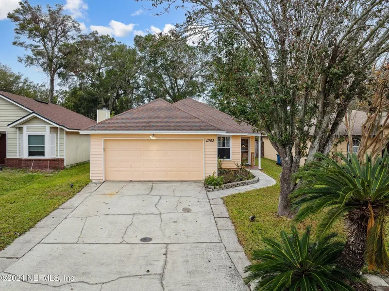 Lovely HOME in FORT CAROLINE area, convenient location close to Shopping, Attractions, Jax Airport, Downtown, Military Base Mayport, St. Johns River and Beaches. Open layout, Freshly Painted, Vaulted ceiling, 3 BEDROOMS, 2 BATHROOMS and a LARGE extra ROOM addition with tile through the ENTIRE HOME! Enjoy the woods view and the big private backyard, a peaceful oasis perfect for relaxing and gardening. Additional highlights include a 2015 Roof, 2020 HVAC system, a New Water Heater and 2023 Water Softener. Separate water meter for the sprinkler system. Very low HOA! You will love living here! One owner since 97!