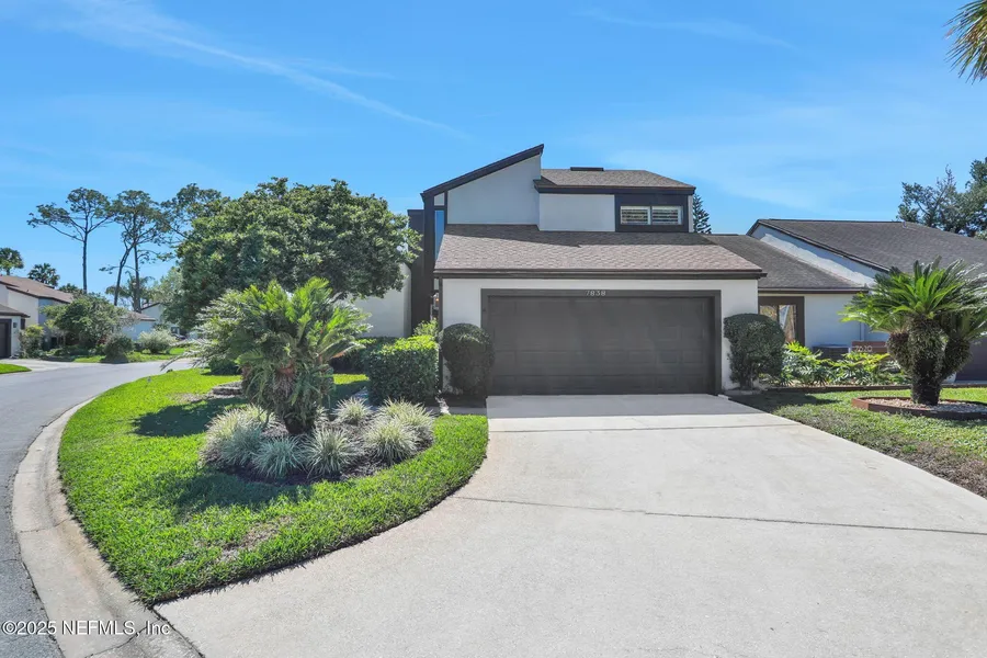 Welcome to the incredible location of Linkside at Baymeadows. This home is move in ready with a new roof (2024), a specular layout and the location is perfect! This charming single-family home features a comfortable and spacious living environment. With 1,962 square feet, the unique features of this home are truly captivating with three bedrooms, two bathrooms and a unique layout. The interior offers an open floor plan with plantation shutters over each window and skylights that allow ample natural light to fill each space. The first floor master suite provides a private retreat with an ensuite bathroom, while the additional two bedrooms offer flexibility for family, guests, or a home office. The home also includes a wood burning fireplace, adding to its cozy ambiance. The two separate living spaces open up to the incredibly private backyard oasis, with a courtyard style enclosure which flows perfectly with plenty of room for dining and entertaining. The home also includes a dedicated dining room off of the kitchen which can be transformed to a flex space, office or playroom.