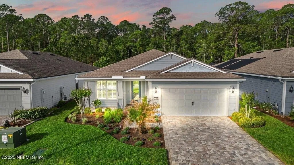 Welcome to your dream home in the highly sought-after Del Webb eTown, Jacksonville's premier 55+ gated community offering resort-style amenities and a vibrant, active lifestyle. This stunning, meticulously built and designed 3-bedroom, 2-bath home features a dedicated office with elegant double doors and built-ins. Perfect for remote work, additional living space or guest room. Enjoy peace of mind with an automatic whole-house Generac generator, whole-house surge protector, and security system all thoughtfully integrated for comfort and security. Step into the gourmet kitchen outfitted with quartz countertops, stainless steel appliances, roll-out drawers, soft-close cabinets, and an oversized walk-in pantry. The open layout is ideal for entertaining. A full Reverse Osmosis & Water Softener system, ceiling fans throughout, and beautiful plantation shutters for added charm. An additional custom indoor sunroom featuring oversized floor-to-ceiling Pella picture windows and a 3-point high-security back door offers stunning, uninterrupted views of the preserve that spans the entire rear of the home. Retreat to your private backyard oasis, backing to a serene preserve view. Whether you're relaxing by the Ebel propane fire pit, listening to the tranquil patio fountain, or enjoying the birdcage-enclosed lanai, this outdoor space is designed to impress. The fenced yard, solar lighting, WiFi-controlled irrigation system, full-home gutters, and floodlights enhance both functionality and low-maintenance living. This true split-bedroom layout offers two guest rooms sharing a stylish full bath with a quartz vanity and walk-in tiled shower. The indoor laundry includes a utility sink, custom cabinetry, and extra storage. The primary suite overlooks the preserve and features double sinks, a walk-in shower with a seat, and a large walk-in closet, designed for both comfort and convenience. Additional Upgrades include: HVAC Air Purification system, Insulated garage with epoxy floors, overhead lighting, pull-down attic stairs, dedicated GFI circuit, and extra attic storage. Set up your showing today!