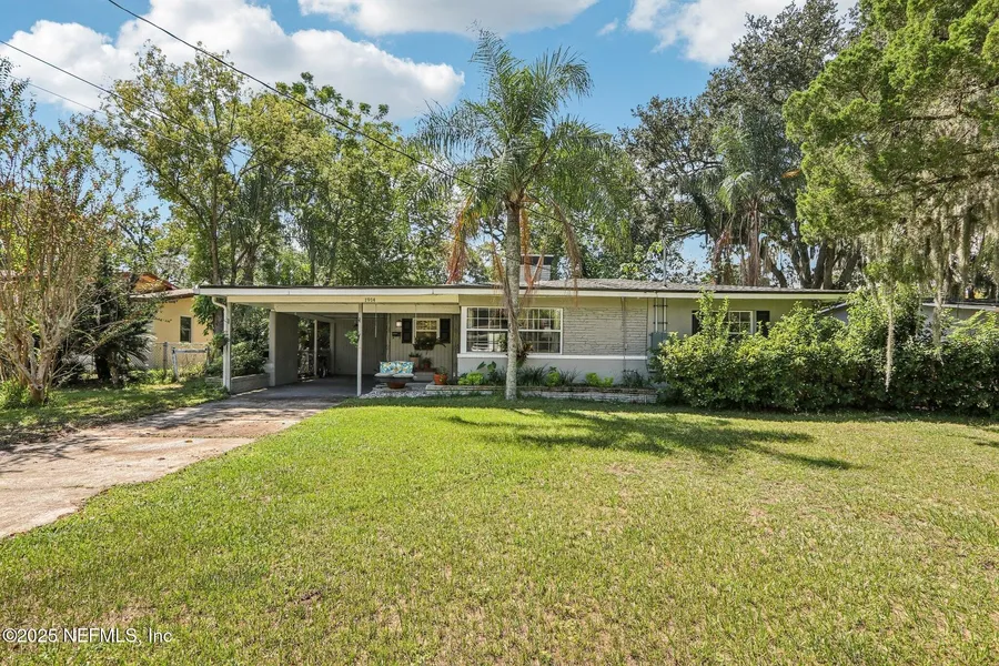 Discover this charming 1950s mid-century modern home in the heart of Lakewood! Offering 2 bedrooms, 1 bathroom, and 1,155 sq. ft. of inviting living space, this residence blends classic character with thoughtful updates. Extra sunroom square footage *NOT* included! Enjoy peace of mind with a newer roof (2022), updated A/C, and a new electrical panel. Inside, an open and airy family room welcomes you, leading to a beautifully updated kitchen with abundant cabinet space and a dedicated dining area. A sunny bonus room connects seamlessly to the extended carport and a covered patio - the perfect spot for grilling or relaxing outdoors. Set on a spacious lot with both a generous backyard and an expansive front yard, this home provides plenty of room to play or garden. Conveniently located near shopping, dining, and I-95, it's move-in ready and waiting for you to make it yours!