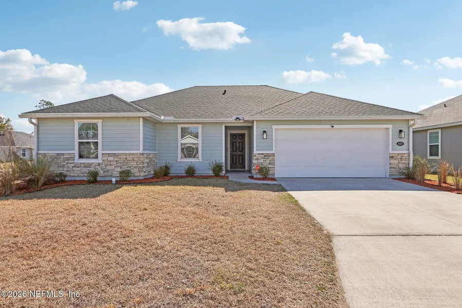 Welcome home to a bright, inviting 3BR/2BA retreat on a spacious corner lot, designed for easy living and everyday comfort. An open layout with vaulted ceilings creates an airy feel, while laminate vinyl floors and recessed lighting add modern warmth. The kitchen is the heart of the home with white cabinetry, subway tile, shiplap accents, a large walk in pantry, and a bar that flows seamlessly into the family room that is perfect for gathering. The primary suite offers a peaceful escape with a large walk in closet and a spa like bath featuring quartz counters and a dual vanity. Secondary bedrooms include thoughtful touches like board and batten detail and a sliding door closet. Enjoy a fully fenced backyard ideal for pets, play, or quiet evenings on the pavered patio under the awning. With charming curb appeal, stylish finishes, and a layout built for connection, this home blends comfort...