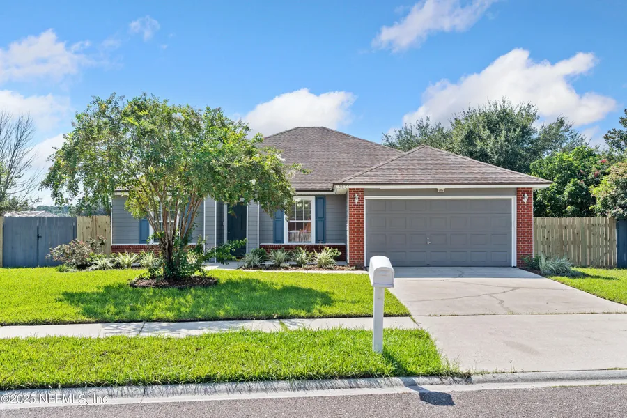 Welcome to this beautifully maintained and freshly painted 3-bedroom, 2-bathroom ranch-style home, offering 1,639 square feet of living space. The spacious living room features sliding glass doors that open to a serene pond. A formal dining room and flex space-perfect for a home office or playroom. The eat-in kitchen boasts stainless steel appliances, granite countertops, and ample cabinet space. The owner's suite is a true retreat, complete with pond views, two spacious closets, dual sinks, a separate shower, and a relaxing soaking tub. Another bedroom also overlooks the tranquil pond, while the third offers generous space for family or guests. Step outside to the patio with a retractable awning. The included solar panels are an ultimate upgrade, giving you the opportunity to significantly reduce your monthly electric bills and save thousands over time! Located just 20 minutes from downtown Jacksonville and 30 minutes from Jacksonville Beach. Don't miss this gem-it won't last!