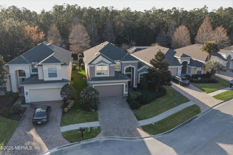 Experience the ultimate in resort-style living with this meticulously updated masterpiece in the prestigious Sweetwater 55+ community. Since 2023, nearly every inch of this home has been transformed, blending modern luxury with the peace of a protected nature preserve. Step through the new glass-front entry into a bright, airy sanctuary defined by soaring ceilings & flooded with natural light. The comprehensive kitchen remodel is a chef's dream, featuring sleek 42'' cabinetry, under cabinet lighting, quartz counter tops, stainless steel appliances, & a massive new center island designed for both meal prep & social gatherings. Main Floor Luxury: The primary suite offers a private retreat with an ensuite bath, new granite finishes, & a spacious walk-in closet. A versatile fourth bedroom on the main level currently serves as a home office. Architectural Details: Enjoy meals under a stunning coffered ceiling in the dining room, complemented by new tile flooring on the main level. The Florida Room (Sun room): A true showstopper featuring a custom feature wall, butler's pantry/bar with beverage cooler, & its own dedicated AC split for year-round comfort. Your Private Outdoor Oasis: Relax on your extended screened paver patio & take in breathtaking, unobstructed views of the pond & treed nature preserve. The fenced backyard includes a removable BBQ grilling station with a sink, perfect for sunset cookouts with no rear neighbors to disturb your peace. Convenience: 3 of the bedrooms have their own en-suite bathrooms for privacy. Versatile Upper Level: New hardwood floors lead you upstairs to two additional bedrooms & 1.5 baths. A bonus room offers endless possibilities as a media room, secondary lounge, office or hobby space. Peace of Mind & Protection: Move in with zero worries. This home is mechanically superior. Systems: New Water Heater (2025), Water Softener (2025), HVAC (2022), and Roof (2021), exterior paint (2021), fence (2022). Extras: Reverse osmosis filtration, ADT security, reinforced garage door, and storm shutters for entire home. Garage: Over-sized 2-car garage with custom flooring, built-in cabinetry, and shelving. Unbeatable Location. Tucked away on a quiet cul-de-sac just steps from a nature trail, you are minutes from the best of Jacksonville. Enjoy 55+ resort amenities (pools, fitness, sports courts) while being only 10 minutes from St. Johns Town Center and 15 minutes from the beach. Everything has been done for you. All that's left is to move in. Schedule your private tour today!