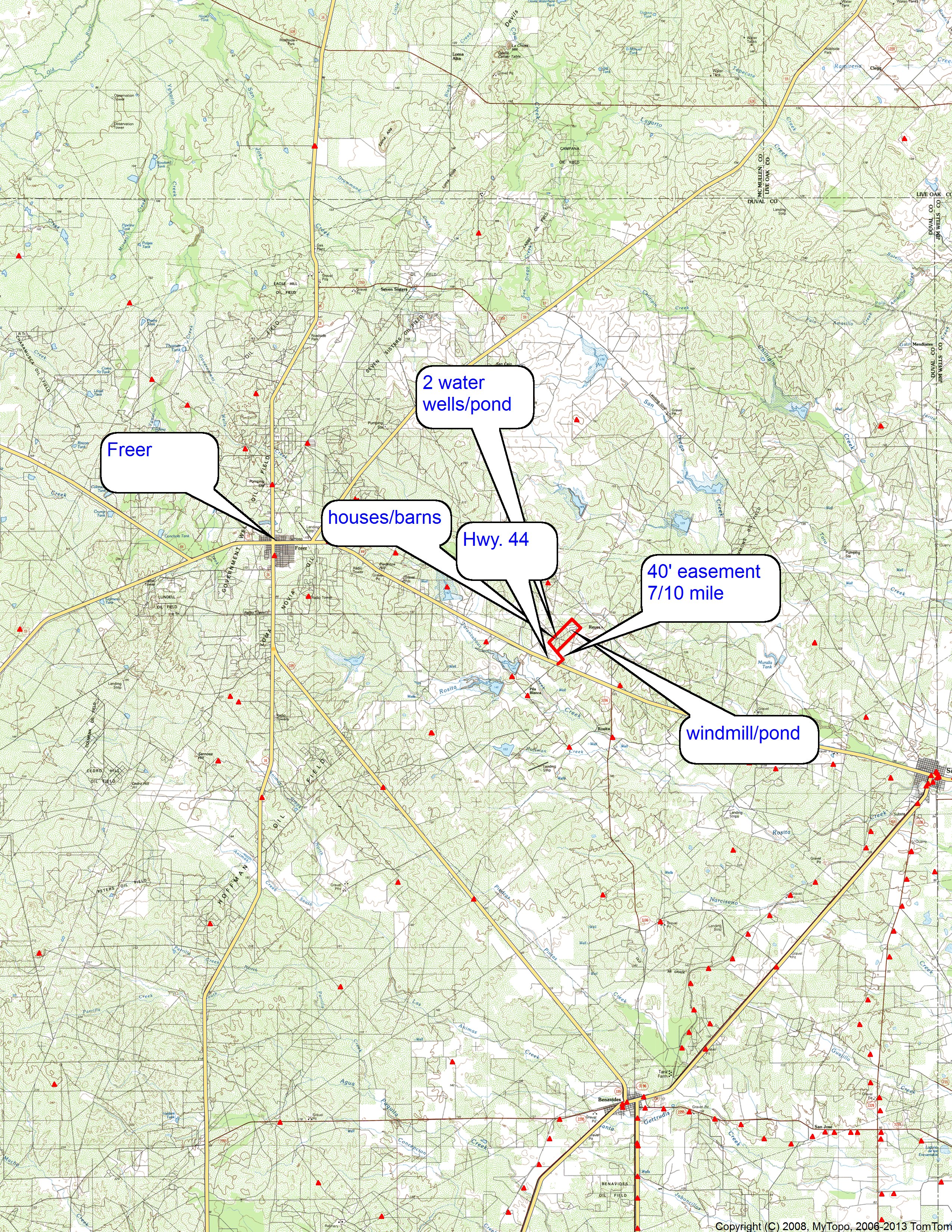Location: The ranch is about 10 miles East of Freer just off of Hwy. 44. There is an easement of about 7/10ths of a mile from Hwy. 44.