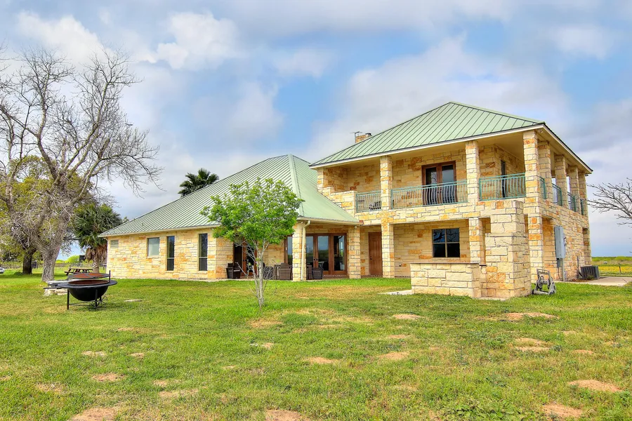 PRIVATE WATERFRONT COMPOUND ON 1000 ACRES WITH ALL THE EXTRAS. This sophisticated ranch home was built to last using Austin stone and 100-year aluminum roof. Inside, the crafted arched double doors welcome you to soaring ceilings, intricate wood detailing, expansive kitchen with Granite counter tops and great prep island make this home the family gathering place. 5 bedrooms, separate and spacious master with outdoor access, and 4 full bathrooms for all your friends and family to come for weekend memories. Incredible wood beams and floor-to-ceiling gas fireplace accentuate the countrified chic, open and airy home full of natural light and intoxicating sunsets. With several storage sheds on the property and even a three car garage, you're sure to have plenty of room for all your ranching equipment and toys. The opportunities with this land are endless. Fish in your very own pond, then rela...