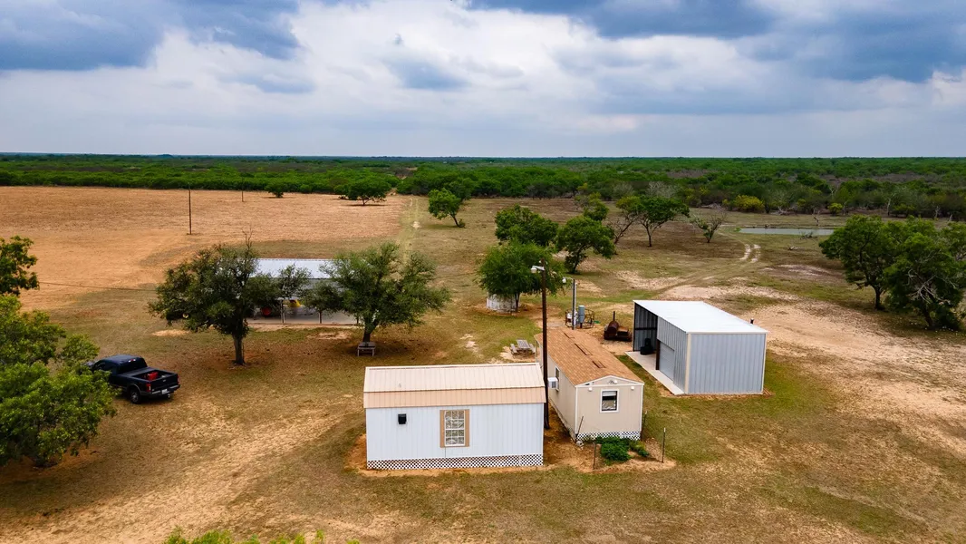 This property contains minimal improvements to give a potential buyer ample opportunity. A good well feeds two small ponds and fresh water for the buildings, a pole barn, cleaning shed/shop, and two small camp buildings. The Atascosa Blinds, Ranch King Blind, and all the feeders will convey with the buyer.