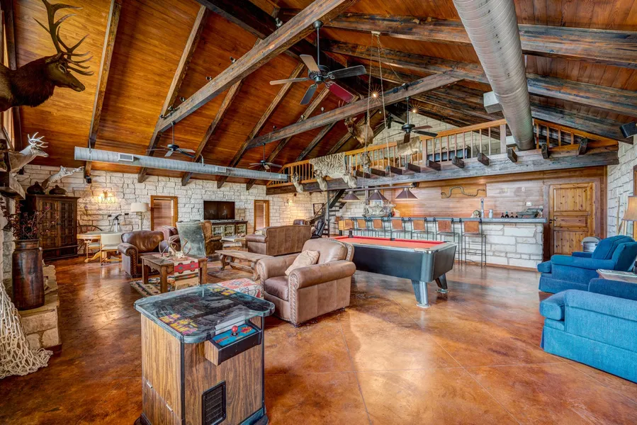 Using the well maintained caliche roads, driving around the property is comfortable, regardless of the weather conditions and no matter the vehicle. The main entrance takes you to the original house which consists of a classic, well maintained South Texas ranch style home with 4 Bedrooms/ 3 Bathrooms and accommodations for 12.Follow the wrap around porch to the cross walk where you will find a recently built, 2 story Game House featuring a one-of-a-kind entertainment space with additional accommodations. The ranch is set up to be hunter friendly, with the storage building, parking area and processing facilities all in the near vicinity. A well designed shooting range is walking distance from the house. Also, the "#1 Feeder" is perfectly situated to allow guests to enjoy watching the wildlife feed throughout the day. The storage building includes covered space for parking ranch vehicles and the processing room includes a walk in freezer.