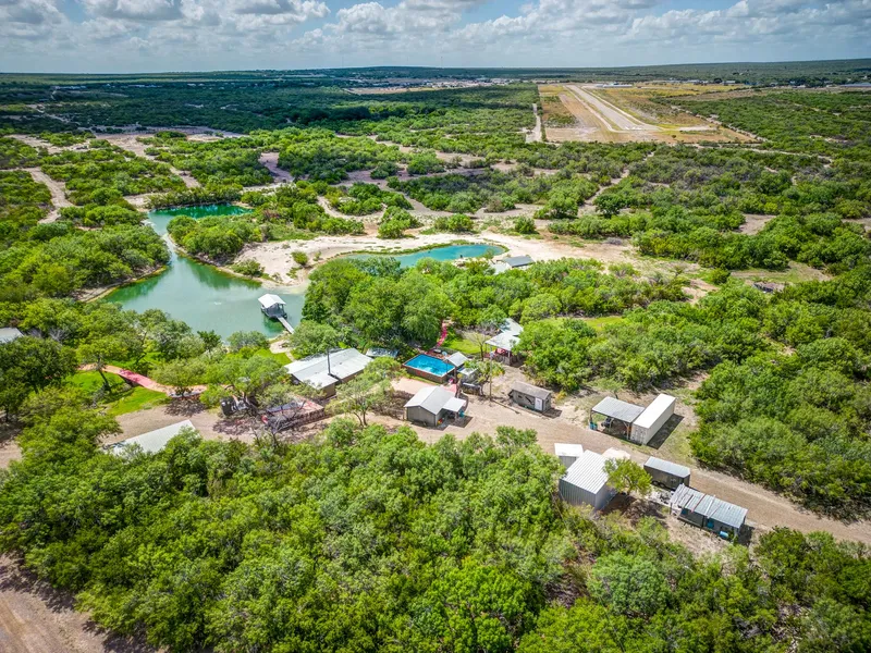 The ranch is set up perfectly for a multi-use commercial hunting ranch, corporate retreat or a recreational property. Structural improvements include a main lodge, a separate guest quarters, owner's house, game room/cantina, above ground swimming pool and foreman's house. Paved walkways, parking and spacious workspace make for easy access around the facilities. A like-new game cleaning area, walk-in freezer, and storage space is set up behind the main living accommodations. A well-manicured, irrigated green space, multiple paved and stone lined fire pits and the bull mesquite shaded yard make for an inviting place to gather, no matter the time of year. Walk through the yard to enjoy the well-lit, extended dock into the actively re-circulated stocked fishing pond.