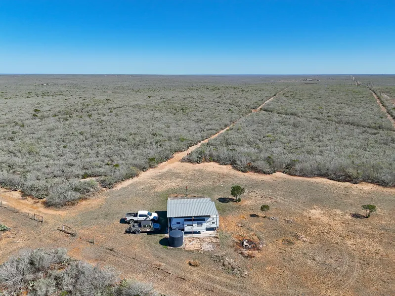 1500 square foot slab (30x50) with a 30x20 metal covered area for RV parking. There is a leach field septic in place. There is no well on the property, however, the 2500 gallon water tank is serviced and filled by South Texas Oilfield service. AEP power on site. Property is fully perimeter fenced. In addition, there is a 25x20 storage shed also on a slab.