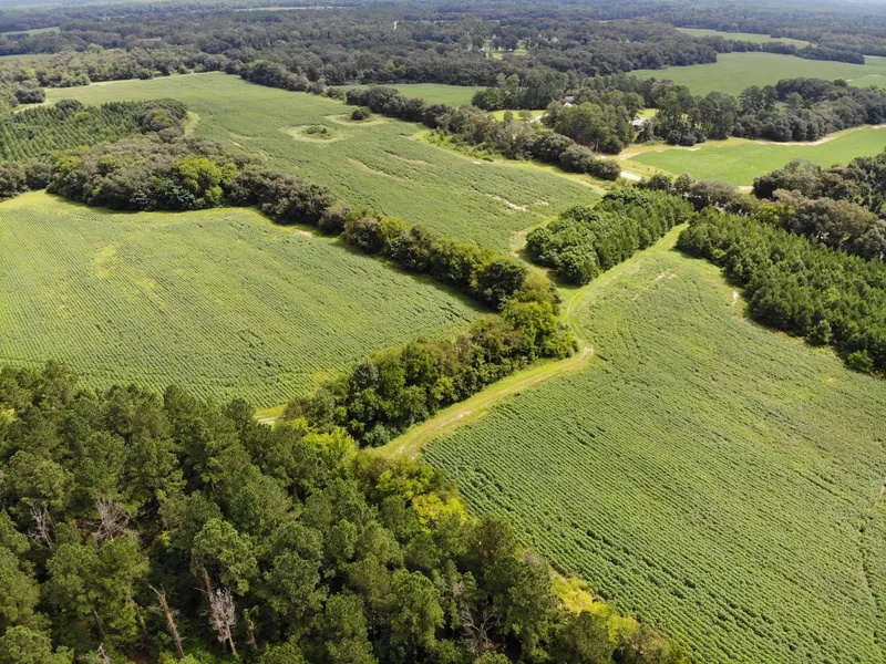 The property is currently made up of approximately 70 acres of row crop (leased for cotton and peanuts), 31 acres of mature planted pine growing chip-n-saw and sawtimber, 16.5 acres of pre-merchantable planted pine for future income, with the balance in pasture and natural hardwoods. An old barn is the only structure on the property, evidence of a history of agriculture dating back generations. Soils are productive for farming and timber, and the property is over 97% high and dry with only 0.5 acres designated as wetlands. The property has plenty of cover for wildlife including deer, doves and even quail.