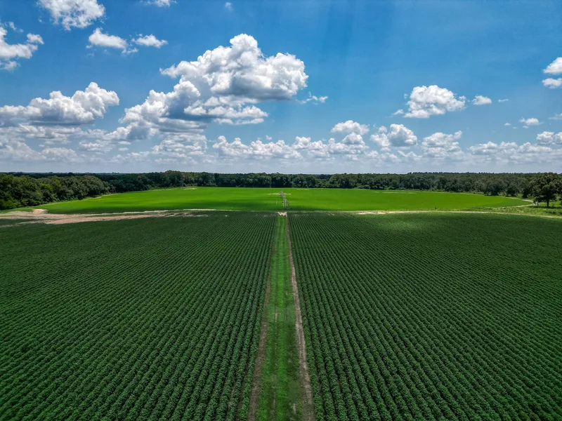 Mill Creek 291 features irrigated farmland, live oak bottoms, and planted pines. This combination of premier recreational hunting land with income producing agricultural ground also provides buyers with future timber investment. Irrigation from a 12-inch well and two center pivots are powered by a John Deere pumping unit, offering reliable infrastructure for consistent yield production.