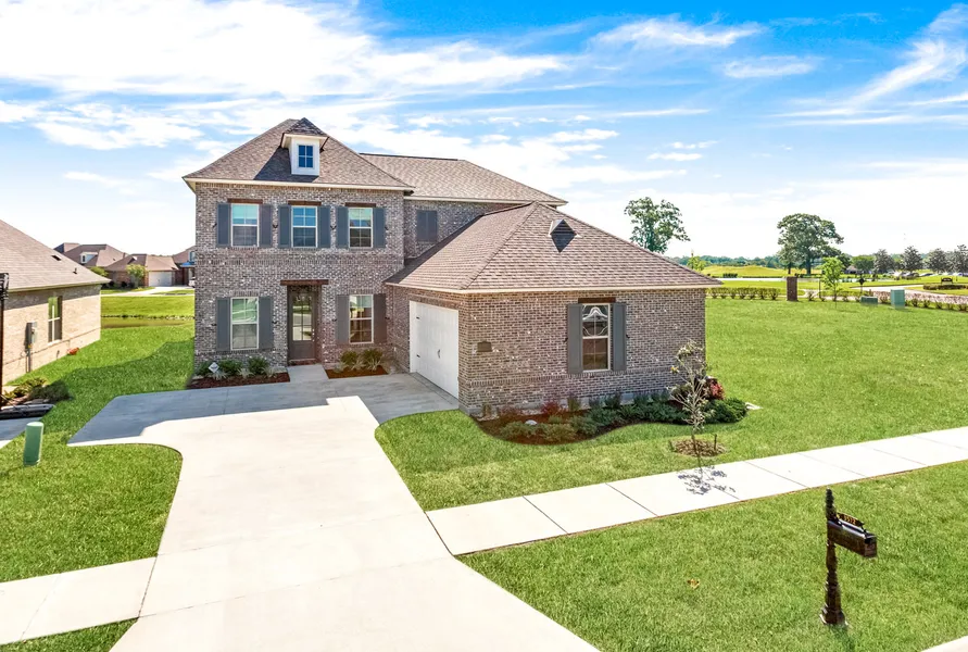 Stunning two story brick home on the pond and next to a common green area space! Enter into the grand foyer with views of the beautiful wood stairs with iron balusters. Large open great room features a ventless gas fireplace with granite accents and beautiful hardwood flooring. Gourmet kitchen includes 3cm granite counters with eat in bar, stainless appliances - a 36"- 5 burner gas cooktop, built in oven, microwave, painted custom cabinets with trash drawer, under cabinet lighting, 1x4 herringbone backsplash, custom pendant lights over the oversized island and walk-in pantry. Master bedroom includes a tray ceiling and spa-like bathroom with a separate 5' soaking tub and tiled shower with seamless shower door, dual sinks with granite counters, framed mirrors, separate water closet, and large walk around closet with custom wood shelving. Downstairs you will also find a study/bedroom and ut...