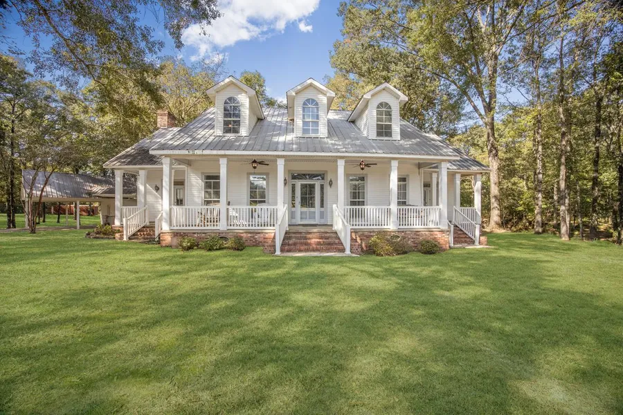 Beautiful 5 bedroom, 3 full bath two-story Acadian style home situated on 33.78 +/- acres in Flood Zone X and featuring an outdoor kitchen with granite countertops, a wood burning fireplace, panoramic views of the mature hardwoods and manicured rolling hills, that is perfect for entertaining family and friends. This Acadian two-story home is truly remarkable inside and out. Some of the exceptional features include elongated covered porches, handicap ramp, granite countertops, cathedral ceilings, wood floors, cypress doors, an abundance of kitchen cabinets, a large center eat at granite island, a formal dining area and a spacious family room. The family room features crown molding, custom windows providing plenty of natural light, a wood burning fireplace with insert, canned lighting and vaulted ceiling. The spacious master bedroom features french doors leading to private porch and en-suite-bath. Head upstairs to the second floor landing and there are french doors opening to two bedrooms and a full bath. Off the front porch feast your eyes on the two-acre stocked pond lined with hardwoods that has a walking trail along with mature Live Oak trees and complete with a partial wooden fence, a gated entry, and a long beautiful driveway. To the left of the property you will find a 4,334 sqft Commercial Shop with 3 phase electrical, an office, Industrial Overhead Crane, and drainage system. Behind the Commercial Shop there is an additional 926 sqft guest house/apartment with covered parking that has a living room, kitchen, bedroom, and full bath, great for a older family member or teenager. The Property is Lined with Hardwoods on both sides and the back - Offering Ultimate Privacy! Seller is willing to give Concessions towards Closing Costs/Updates with Full Price Offer. A True Sportsman's Paradise, offering the finest Wildlife and ultimate retreat! Great Location, Private, Quiet and Peaceful make an appointment now for your own private showing!