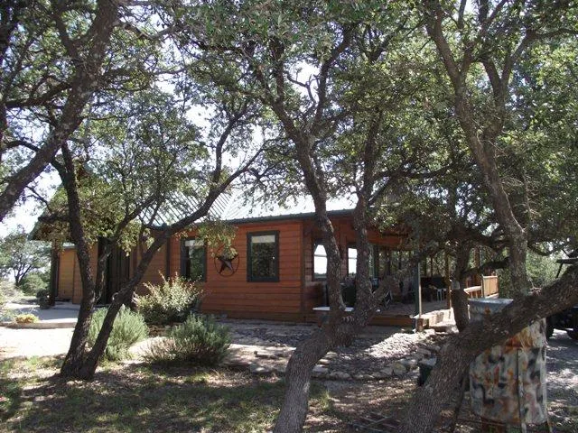 The main home has two living areas, two bedrooms, dining room, kitchen, viewing area, utility room, and 2.5 bathrooms. The central appraisal district says there are approximately 2945 sq. ft., but the home owner thinks it is closer to 2200 sq. ft. and that the porches are included in the central appraisal district's numbers. The guest house has approximately 1600 sq. ft. and has a living room with a wood-burning stove, kitchen, dining room, game room with a dry bar, and a huge upstairs room large enough to sleep a football team! The office sits off by itself up on a little hill under some pretty trees. It is just a small office with built-ins. The grounds are beautiful. It is truly a paradise.