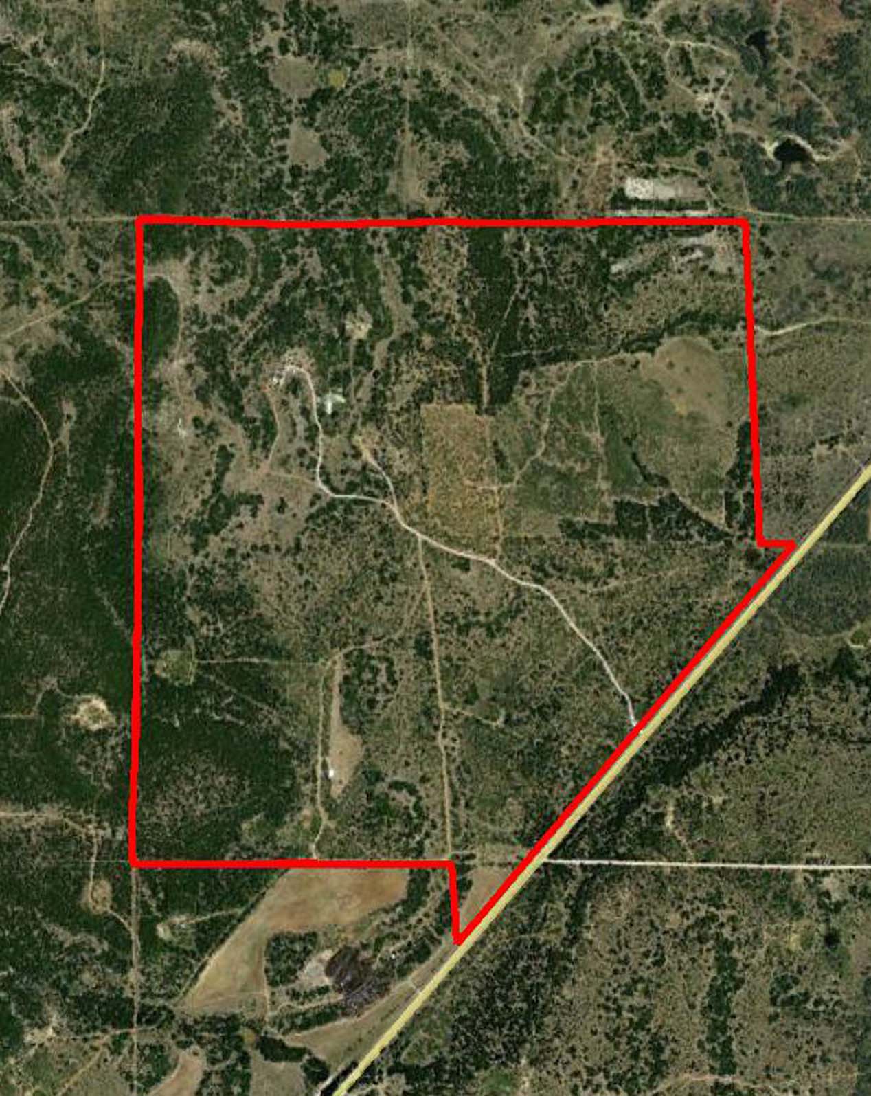 606.471 +/- acres with several hills, creeks, mostly woods, and water. This is a nicely improved recreation hunting property with many natural amenities that are appealing to the eye. There are several hill ridges with large canyons in between that hold creeks at the bottom of the canyons. The many elevation changes on this property enhance the feel of the acreage to be even larger than it actually is. Towards the center of the ranch is a nice double wide mobile home set on a hill side with excellent views. There are also adjacent RV connections. The road that enters the property and connects to the dwelling is an improved road with drainage ditches and culverts and improved rock surface which makes it an all-weather road. There is a long range gun range on the property with a shooting building with storage and shooting bench. The views from all over the ranch are tremendous from t...