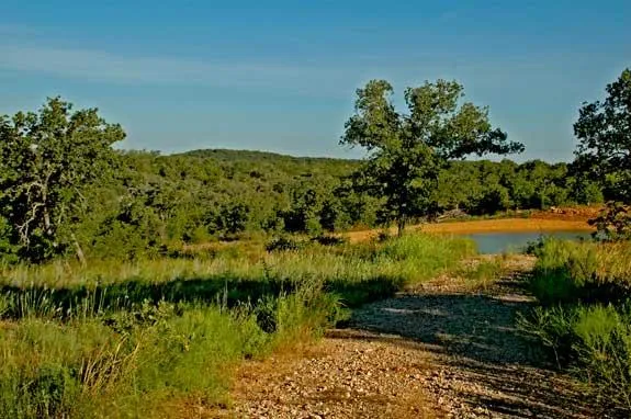 Cleared meadows studded with mature oak trees for home building sites. Electricity to border for future building. Paved access to within feet of front gate.
