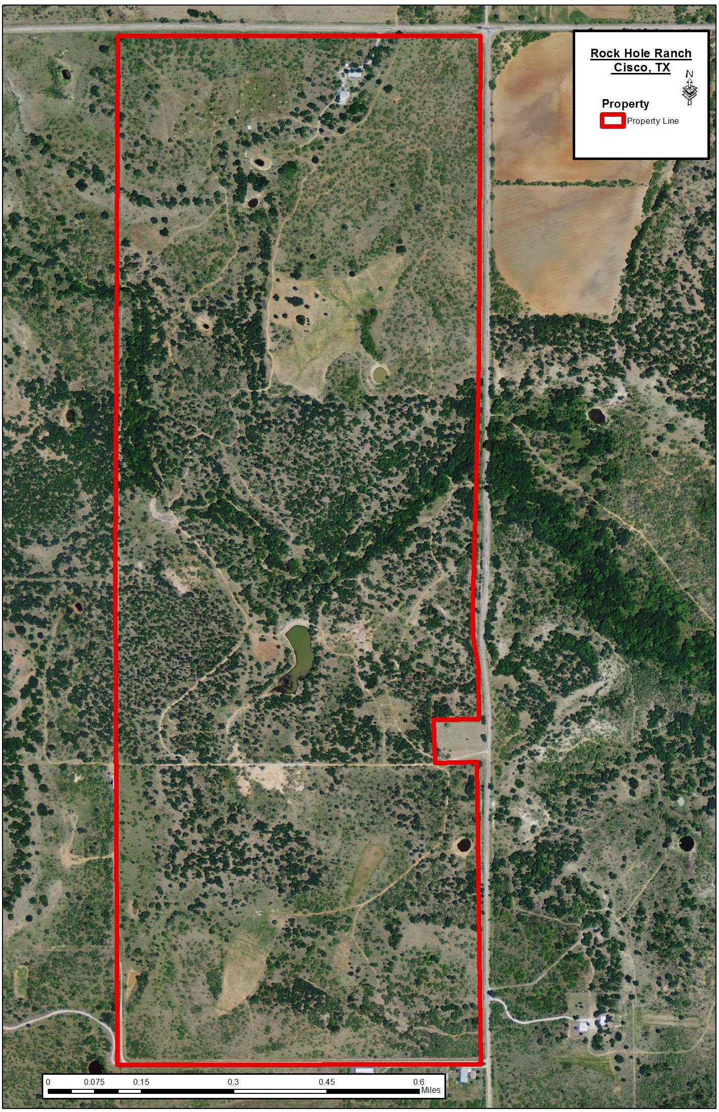 Rock Hole Ranch (high game fence ranch) This 445.34+/- acre high game fence ranch is located on the Leon River and has been under deer management since December 2002. There is a 3 BR 2 bath home with attached garage, breeze way, shop, lake, many ponds, and deer breeding pens. The Rock Hole Ranch was high game fenced in December of 2002. This is a ranch that is ready now for trophy whitetail to be harvested, not years down the road. There have been numerous deer with 200"+ genetics purchased and released on the property. A small number of Sika deer are on the property mainly for a little diversity but the numbers are kept very low as the main intent of the ranch is Whitetail management. The whitetail breeding pen system consists of 10 different pens with an alley way connecting all the pens for easier deer movement from one pen to another pen. There is a water line laid underground to the pens. It is conveniently located close but not to close to the house. The breeding pens are not currently being used for deer breeding. The house area has an additional high fence around it. The land is mostly timbered with Live oaks and Post oaks. Other trees include pecan, willow, red oak, and mesquite trees. There are numerous large hills and canyons on the property with views for miles in all directions. There are numerous self-feed protein feeders, corn feeders, and stands that will convey with the ranch. There are also three docks located on three different water bodies. The lake was stocked with Florida hybrid bass that have produced some very large sizes. A good portion of the lake was left with timber standing and has provided excellent fish habitat. The other ponds have bass, catfish, perch and crappie in various mixtures of the different ponds. There is a pipe set of livestock pens for gathering or working cattle. The house is a very nice 3 bedroom 2 bath home with a breezeway and an attached garage. Water is supplied by a rural water line and there is a water-well for other purposes as well. It is heated and cooled with central heat and air. There are tile floors through out the house. A covered deck on the back of the house overlooks the yard area and beyond. Behind the house is a metal barn with a concrete floor that has a parking shed on one side and attached horse stalls. The yard in between the barn and the house is set up for social outings with outdoor lighting, a rock fire pit, rock bench and other amenities.