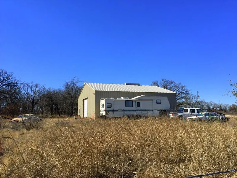 82 acres with FM road frontage on the East side & county road frontage on two sides. Barbed wire fences are good on 3 sides & a poor fence on the South side. The metal shop is on cement slab with kitchenette, bath, laundry & a bedroom. There is 1 nice stock tank, post oak clusters & scattered mesquites. Property has slight rolling terrain & nice views & native grasses. There is 1 water well & 1 gas well, sellers own NO mineral rights