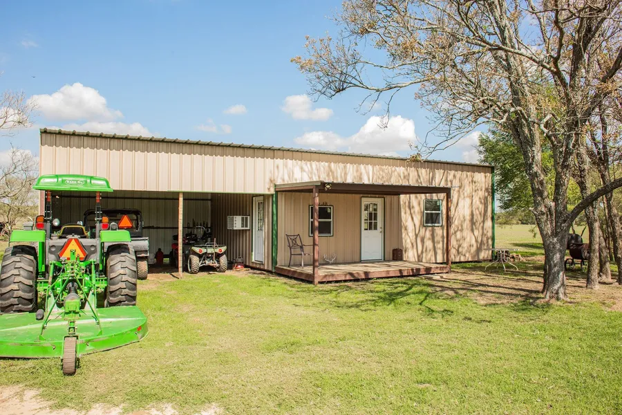 Come enjoy a turn key hunting property. This 117 acres has a 600 sq ft hunters cabin (needs finish out) with 400sq ft of covered parking for vehicles or ATV's, two 50amp RV plugs, electricity & a water well that produces 10 gallons of water per minute. New fencing on 3 sides and the 4th side has been restretched & T-posts added. Seller cleared out ATV driving lanes around the property. Two fiberglass deer blinds on towers along with corn and protein feeders will convey. There are many different tree varieties, post oak, mesquite, pecan, evergreen trees, and a pear tree. The property has a mix of open areas and dense cover for wildlife. You can watch the wildlife feed on the wheat field from inside the cabin.