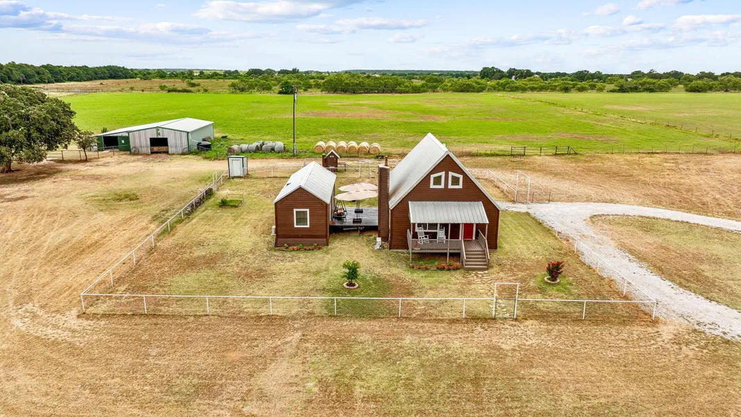 Charming Horse Property on nearly 19 Acres! Discover this horse lover's dream! This estate features a 1 bed, 1.5 bath main house with an open floor plan, 23 ft ceilings, a fireplace, and a covered front porch. The kitchen includes an island, and the large master bedroom boasts walk-in closets and a hidden storage room. The master bath offers a beautiful walk-in shower. A ladder-accessible loft provides extra storage The addition with 2 beds and 1 bath, shares a porch, ideal for rental income or family. Enjoy covered parking, a horse barn with four 12.5x10 stalls, a tack room with a pivoting saddle rack door, and a large shop with electricity. The back 9 acres is hay meadow and the front acreage pasture has oaks and pecan trees. There is a custom doghouse and the property is fully fenced, cross fenced with sandy loam soil, a round pen, three-sided loafing shed, and a donkey pivot. Perfect for horse trainers, income potential, or outdoor enthusiasts, with easy access to Rodeos via I-20