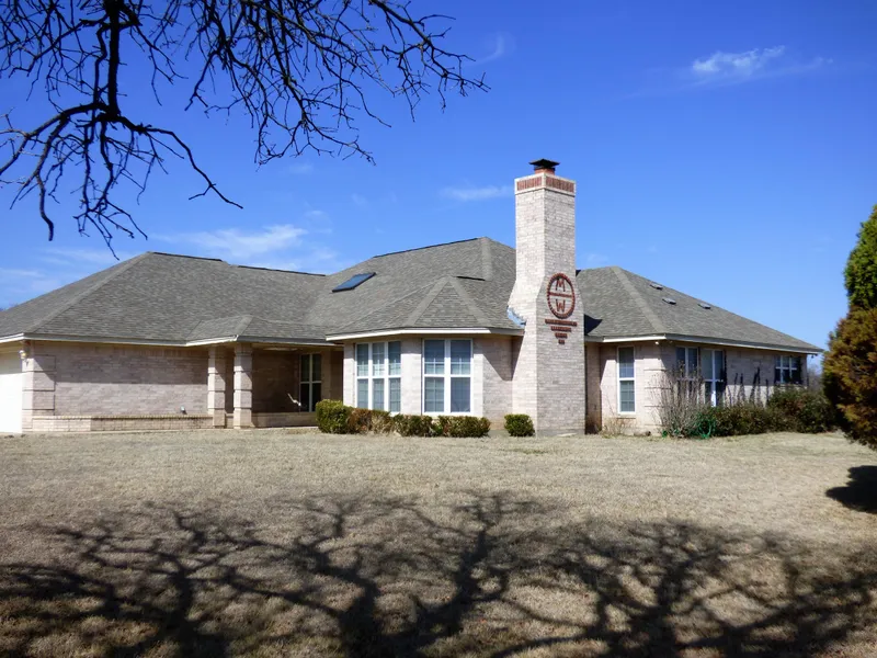 Beautiful 3461 sq ft 4 bd 2 bth custom brick home w 3 car garage on 22 wooded ac, formal dining and living room both with fireplaces, roomy kitchen with custom oak cabinets, several electric skylights, built in china cabinet. Master suite has patio doors that open to a covered patio with a view of the wooded acreage. Master bath has Jacuzzi tub, dual sinks, tiled walk in shower and walk in closet. One bedroom has a large built in fire safe. Nice patio off of the living room leads to a large back yard. Huge attic has walkways and shelving. Acreage has trails cut through and a seasonal creek. This property is inside the Eastland city limits.
