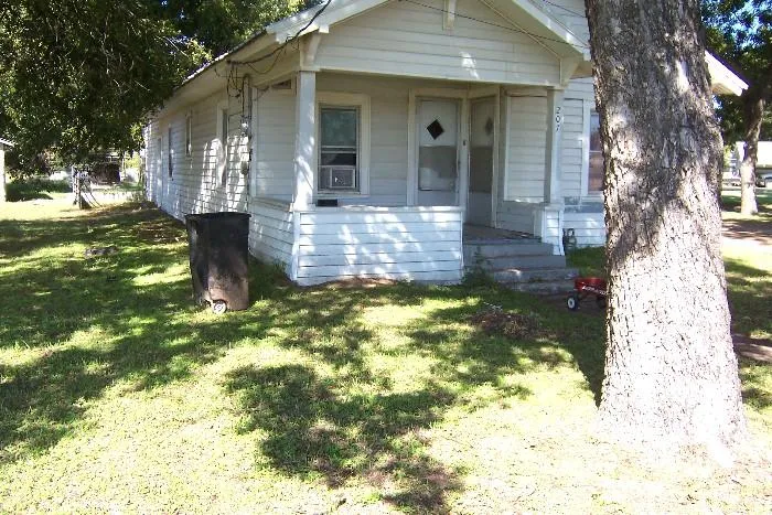 2 bedroom, 1 bath frame home with 916 sq. ft. living area, metal roof, 1 car garage + a single carport, several storage buildings, nice trees.
