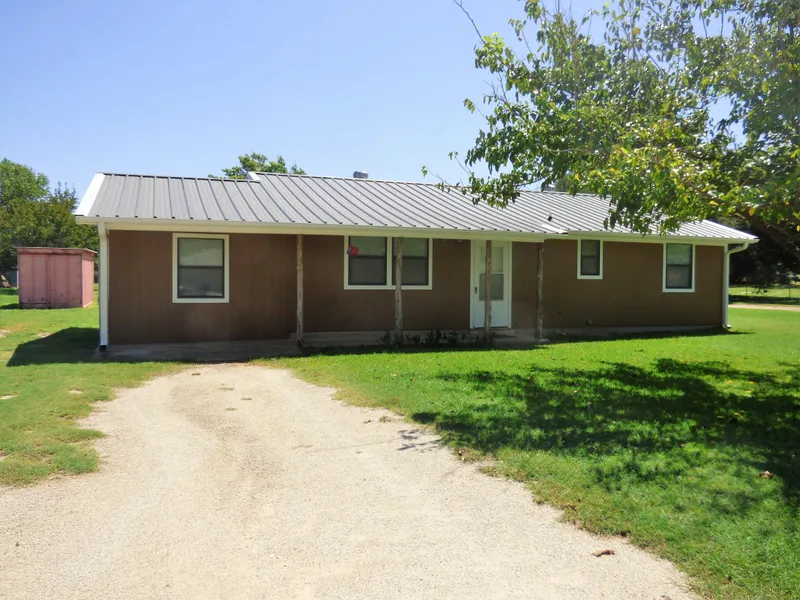Really neat, clean updated 3 bd 1.5 bath house on a large corner lot with an extra city lot on the north side. New 40 yr metal roof in 2015 with gutters; new central heat and air 2016; new windows and Hardi board siding 2016; new stove, microwave and fridge 2016; new vinyl flooring 2016; new tile countertops 2017; fresh paint inside and out 2017. Large cedar posts on the front porch. Portable storage container will convey! This is a great house with lots of room outside to build a shop or anything you need.