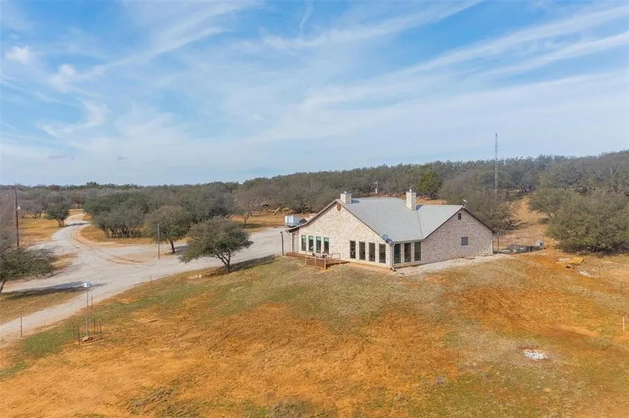 Truly a dream property! Magnificent home sits on a hill overlooking 305 beautiful acres. Home boasts custom granite countertops and custom pecan wood cabinets throughout. Kitchen with farm sink and island opens up to the living room which features a wood burning stove. From there step into the wonderful front room running the entire length of the house giving you fantastic views out the bay windows while warming yourself by the wood burning fireplace. Primary walk in closet has a gun safe room with metal plating under the sheetrock. Man cave with vaulted ceilings contains a Family Safe tornado shelter. Oversized detached garage has work space and a 50 amp plug; open covered area behind garage for outdoor cooking with small storage and meat processing room. 25x22 carport. Property is completely high fenced and cross fenced with approximately 40 Fallow Deer and 17 Red Deer. This can be a perfect turnkey getaway located about 90 minutes from DFW! Additional information available.