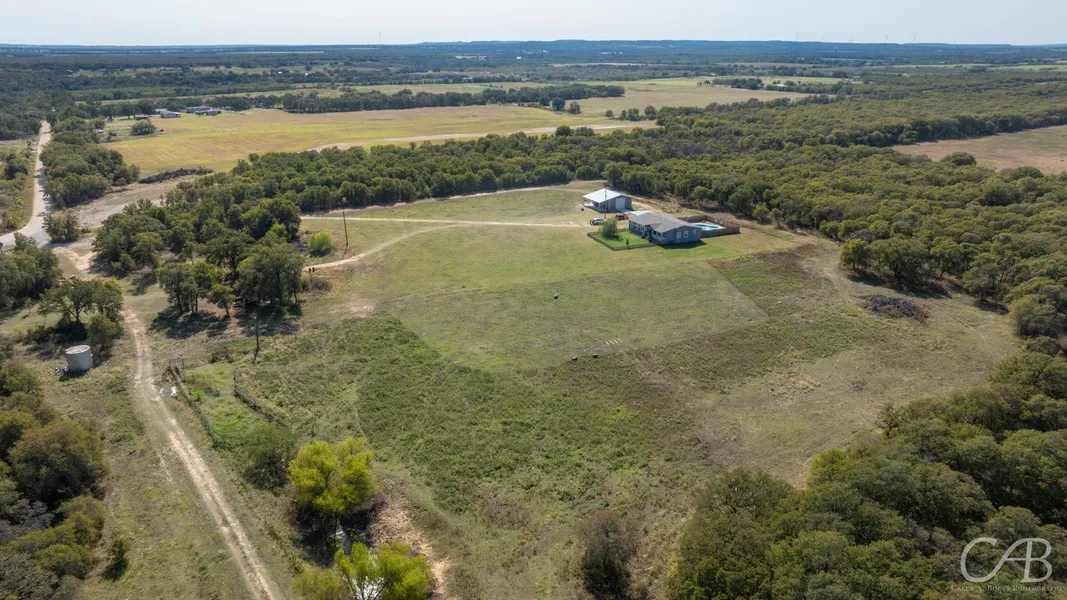 Welcome to your peaceful 40-acre retreat, ideally located just an hour from both Dallas-Fort Worth and Abilene. This spacious 4-bedroom, 3-bathroom manufactured home offers a relaxed lifestyle with an open floor plan, perfect for both family living and entertaining. Inside, you'll find two living areas, two dining spaces, and a thoughtfully designed kitchen with a large island featuring a prep sink, a breakfast bar, and charming stone accents. Gather around the cozy wood-burning fireplace in the bright and inviting living area, filled with natural light. The primary bedroom is a true sanctuary, complete with a large sitting area and a luxurious ensuite featuring dual sinks, a soaking tub, a separate shower, and a walk-in closet. The property extends your living space outdoors, where you'll discover a stunning in-ground pool with a tanning ledge and a covered deck perfect for warm Texas d...