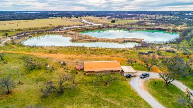 This 230 acres offers 3bed 2bath 1960 sqft open concept ranch style home with full length porches front and back, along with a two car covered carport. The house overlooks 3 very large ponds stocked with fish, one tank is spring fed and these tanks are utilized to irrigate part of the coastal fields during the spring and summer months. There are 4 additional earth dug tanks provide ample water for livestock and wildlife. Well maintained rock and dirt roads provide access all over the ranch. Additional improvements to the ranch include a large 200X300 +/- foot lighted arena that comes complete with an air, push button, preifert chute, arena has catch pen and return ally and press box for producing roping and other equine events. A large barn with 4 covered stalls and runs comes with tack room as well as a very nice 1 bed 1 bath apartment. Behind these stalls are a nice set of cattle working pens with chute, the pens are set up for easy use to for loading or the ally turn horses or cattle into larger pens or out into the coastal pastures. A branch of the leon river winds through the south east portion of the ranch providing towering trees and beautiful scenery throughout the bottom land including an old bridge used to cross from one side to the other. There is roughly 100 acres of coastal (60 of which can be irrigated) with the remaining property being native pasture with scattered mesquite and oak trees. The native area along with the river bottom land provide great wildlife habitat for white tail deer, turkey, hogs, and dove, deer in the 140-160 inch range have been harvested in the immediate area. This property is conveniently located less than 1 mile off Interstate 20, 60 miles from Weatherford and 50 miles from Abilene.